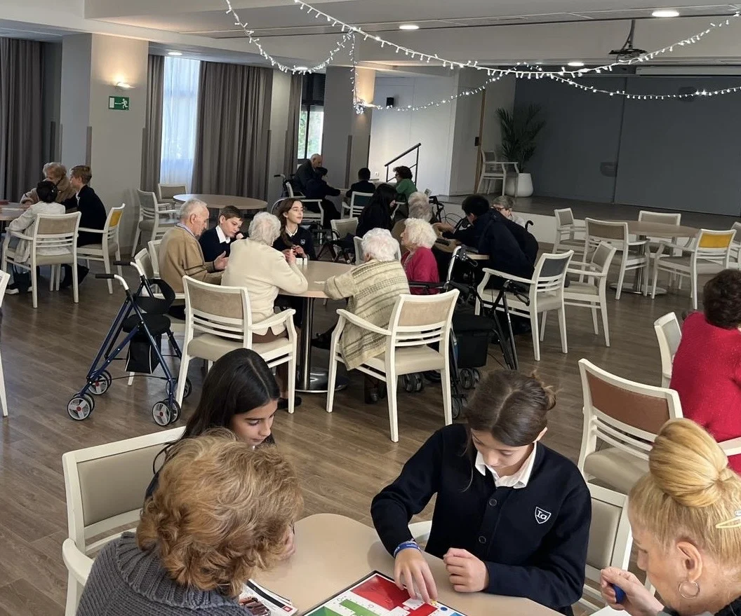Dentro de la unidad de indagación, los alumnos de 6.º de Educación Primaria han demostrado que el aprendizaje va mucho más allá del aula. A partir de sus reflexiones y de manera totalmente espontánea, surgió en ellos la necesidad de actuar para ayudar a los demás, especialmente a personas y organizaciones que realizan una labor social fundamental.Los alumnos pensaron en distintas iniciativas para colaborar con residencias de ancianos, el Banco de Alimentos y personas que se encuentran en situación de soledad, un tema especialmente significativo en fechas como la Navidad. Desde el inicio, mostraron una gran sensibilidad y creatividad, proponiendo talleres y actividades pensadas no solo para ayudar, sino también para acompañar y compartir tiempo de calidad.Una de las experiencias más enriquecedoras fue la visita a la residencia de mayores más cercana al colegio, donde alumnos y residentes disfrutaron juntos de diferentes talleres como zumba navideña, cocina y juegos tradicionales. Estos momentos de encuentro permitieron crear vínculos intergeneracionales y dejaron huella tanto en los mayores como en nuestros alumnos.Además, se llevó a cabo una recogida solidaria para el Banco de Alimentos, así como la elaboración de pósteres y otros materiales para dar visibilidad a estas acciones y compartir la experiencia con el resto del alumnado del centro.Estas iniciativas reflejan cómo nuestros alumnos han comprendido la importancia de la empatía, la solidaridad y el compromiso social, convirtiéndose en verdaderos agentes de cambio dentro de su comunidad.Valme.