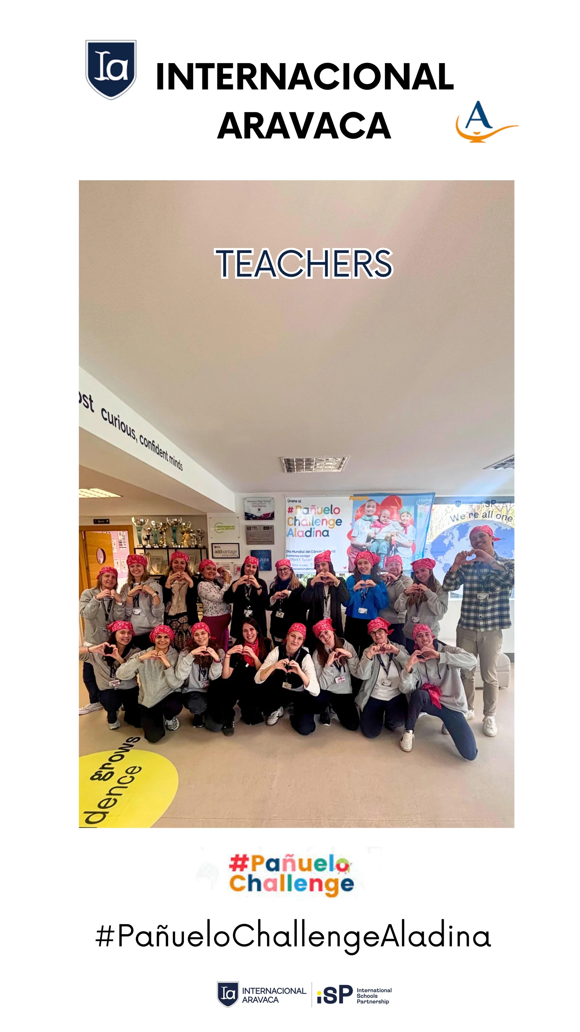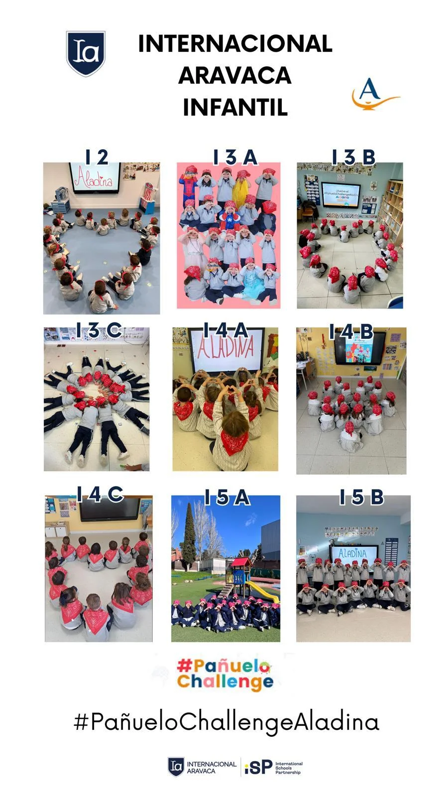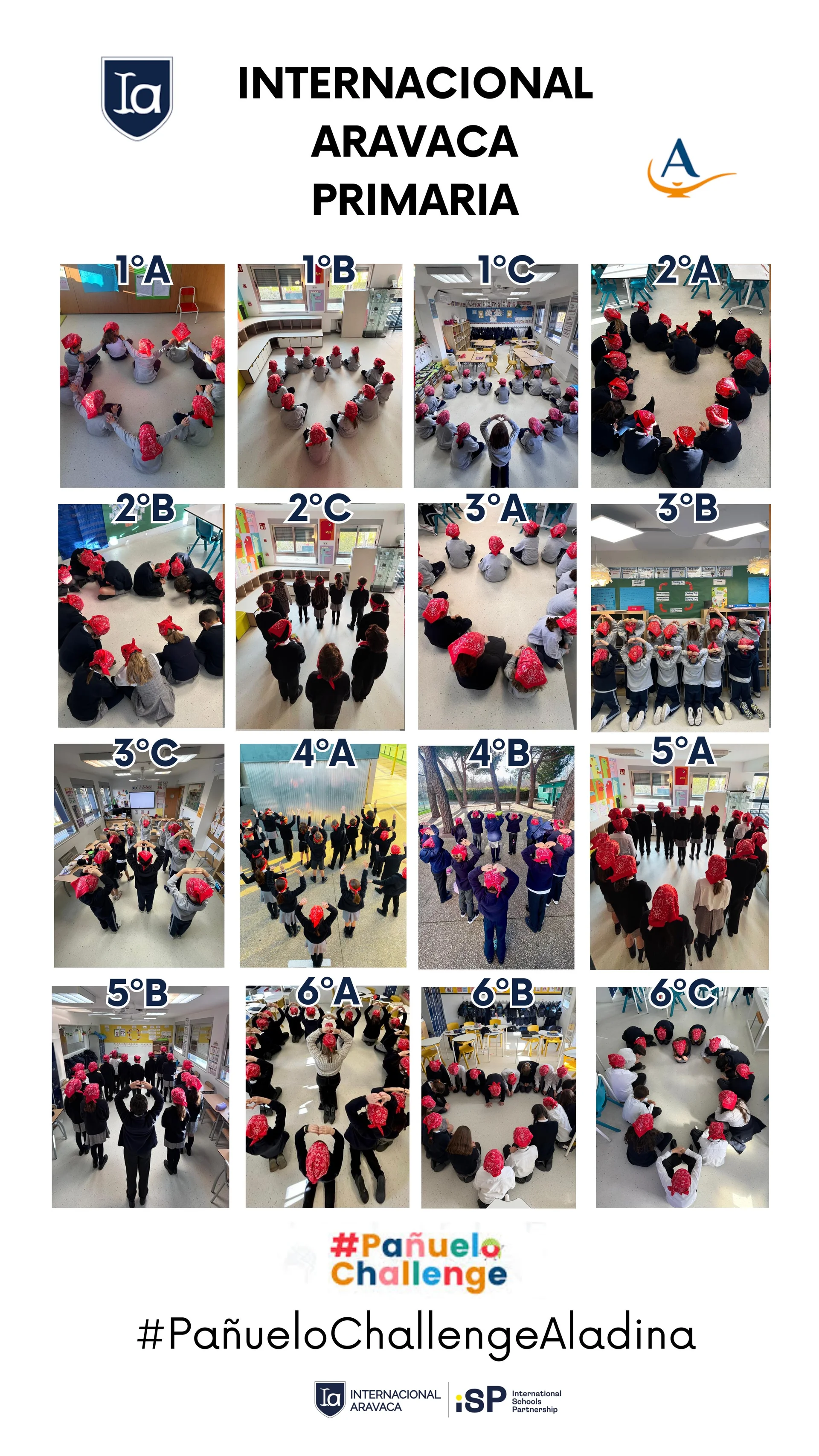 Un año más, en las etapas de Infantil y Primaria nos hemos unido al Pañuelo Challenge para colaborar con la Fundación Aladina, entidad que acompaña y apoya a niños y adolescentes con cáncer y a sus familias. Durante los días previos a la iniciativa, en las aulas explicamos al alumnado el sentido de esta acción solidaria, utilizando recursos y vídeos adaptados a su edad para ayudarles a comprender la importante labor que realiza la fundación y cómo un pequeño gesto puede generar un gran impacto.Entre los días 26, 27 y 28 de enero, los alumnos que quisieron participar trajeron sus aportaciones voluntarias al colegio. Gracias a la implicación y generosidad de nuestras familias, hemos conseguido recaudar 1.400 euros, que ya han sido destinados íntegramente a la Fundación. Queremos expresar nuestro más sincero agradecimiento a todas las familias que habéis colaborado; vuestra ayuda ha sido fundamental y demuestra, una vez más, la fuerza de nuestra comunidad educativa cuando trabajamos juntos por una causa común.Esta iniciativa no solo ha tenido un valor solidario, sino también formativo, ya que se enmarca dentro del trabajo que realizamos en torno al Perfil de la Comunidad de Aprendizaje del IB, dentro del Programa de la Escuela Primaria (PYP). A través del Pañuelo Challenge hemos reforzado especialmente el atributo de “solidarios”, promoviendo en nuestros alumnos la empatía, la sensibilidad ante las necesidades de los demás y el compromiso con la acción. Nuestros estudiantes han podido experimentar que ser solidarios significa implicarse activamente para mejorar la vida de otras personas y que, independientemente de la edad, todos podemos contribuir a construir un mundo mejor.El día 12 compartimos además un momento muy especial llevando nuestros pañuelos y realizando una actividad conjunta que simbolizó la unión de toda la etapa en torno a esta causa. Fue una experiencia significativa que dio sentido a todo el proceso vivido en las aulas y que, sin duda, permanecerá en el recuerdo de nuestros alumnos.Gracias por ayudarnos a seguir educando no solo en conocimientos, sino también en valores. Juntos seguimos formando personas comprometidas y verdaderamente solidarias.Amy.